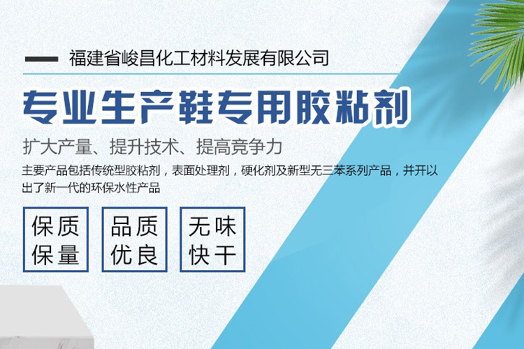 福建省峻昌化工材料發(fā)展有限公司總部設(shè)在中國鞋鄉(xiāng)——晉江。為更好、更方便服務(wù)廣大客戶,我司在廣東江門及福建均設(shè)有先進的PU膠生產(chǎn)基地,歡迎廣大同行前來我司灌裝或批發(fā)銷售。公司是一家中外合資,面向亞太地區(qū)從事研究,生產(chǎn)銷售鞋用粘膠10多年的專業(yè)公司。從國外引進生產(chǎn)能力為數(shù)萬噸的全套先進生產(chǎn),檢驗設(shè)備,與德國Bayer,日本DENKA及美國,西班牙等其它海外公司有著密切的原材料及技術(shù)合作。公司主要產(chǎn)品包括傳統(tǒng)型膠粘劑,表面處理劑,硬化劑及新型無三苯系列產(chǎn)品,并開以出了新一代的環(huán)保水性產(chǎn)品。供應國內(nèi)外鞋業(yè),手提箱包及建筑工程單位使用。公司始終保持產(chǎn)品的良好品質(zhì)及專業(yè)特性,并倍受廣大客戶好評。